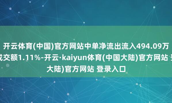 开云体育(中国)官方网站中单净流出流入494.09万元、占成交额1.11%-开云·kaiyun体育(中国大陆)官方网站 登录入口